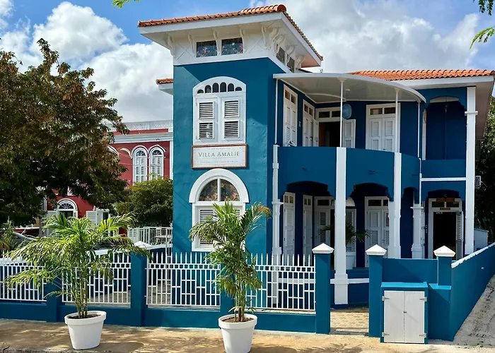 El hotel se encuentra en el barrio Pietermaai, a un corto paseo de la Willemstad. El Villa Amalie & Villa Curiel está situado a 1 km del centro de Willemstad. El lugar está a poco más de 10 minutos en coche del Curaçao Sea Aquarium y de otras atracciones principales de Willemstad. La parada de autobús Woutersplein está al lado de este hotel.